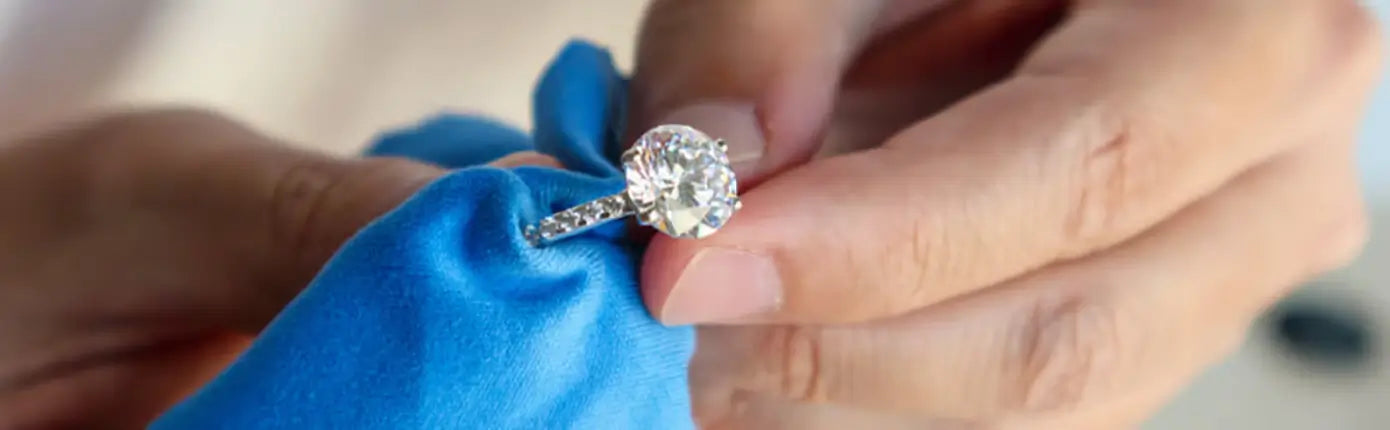 You can clean your lab grown diamond jewelry the same way that you do most of your fine jewelry. One simple method is to use a little dish soap and warm water and gently scrub your jewelry with a soft cloth or soft bristle tooth brush. Rinse it clean and then let it dry on a soft cloth. Another options is to use an ultrasonic jewelry cleaner. If you need more professional cleaning or repairs, please contact us.