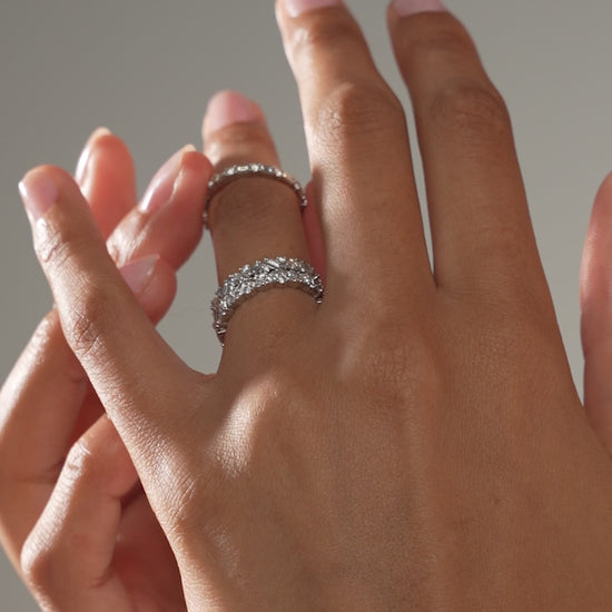 - Size 6: 14 baguette and round Lab-Grown diamonds at 1.0 cttw (ranges depending on finger size)
