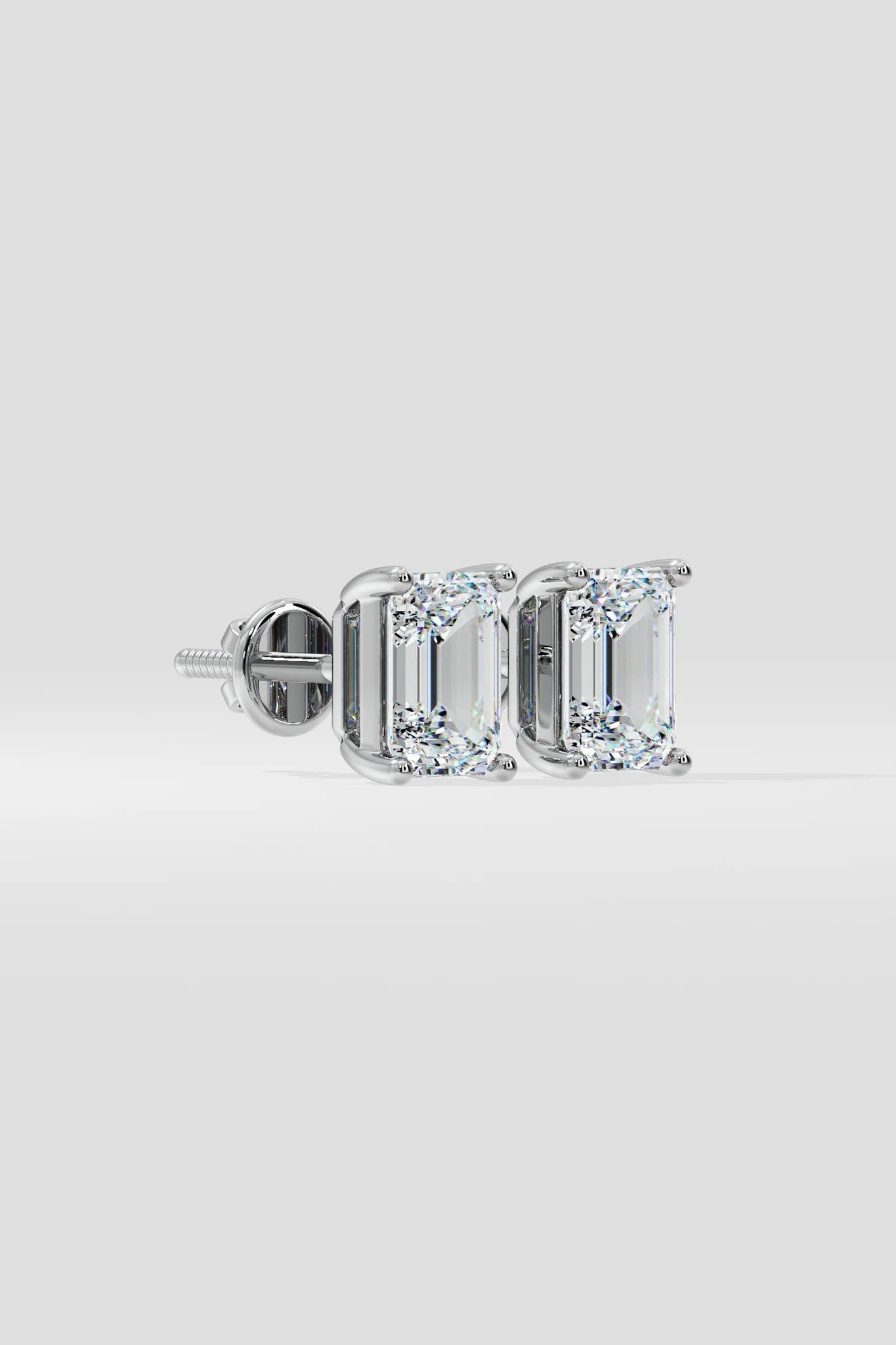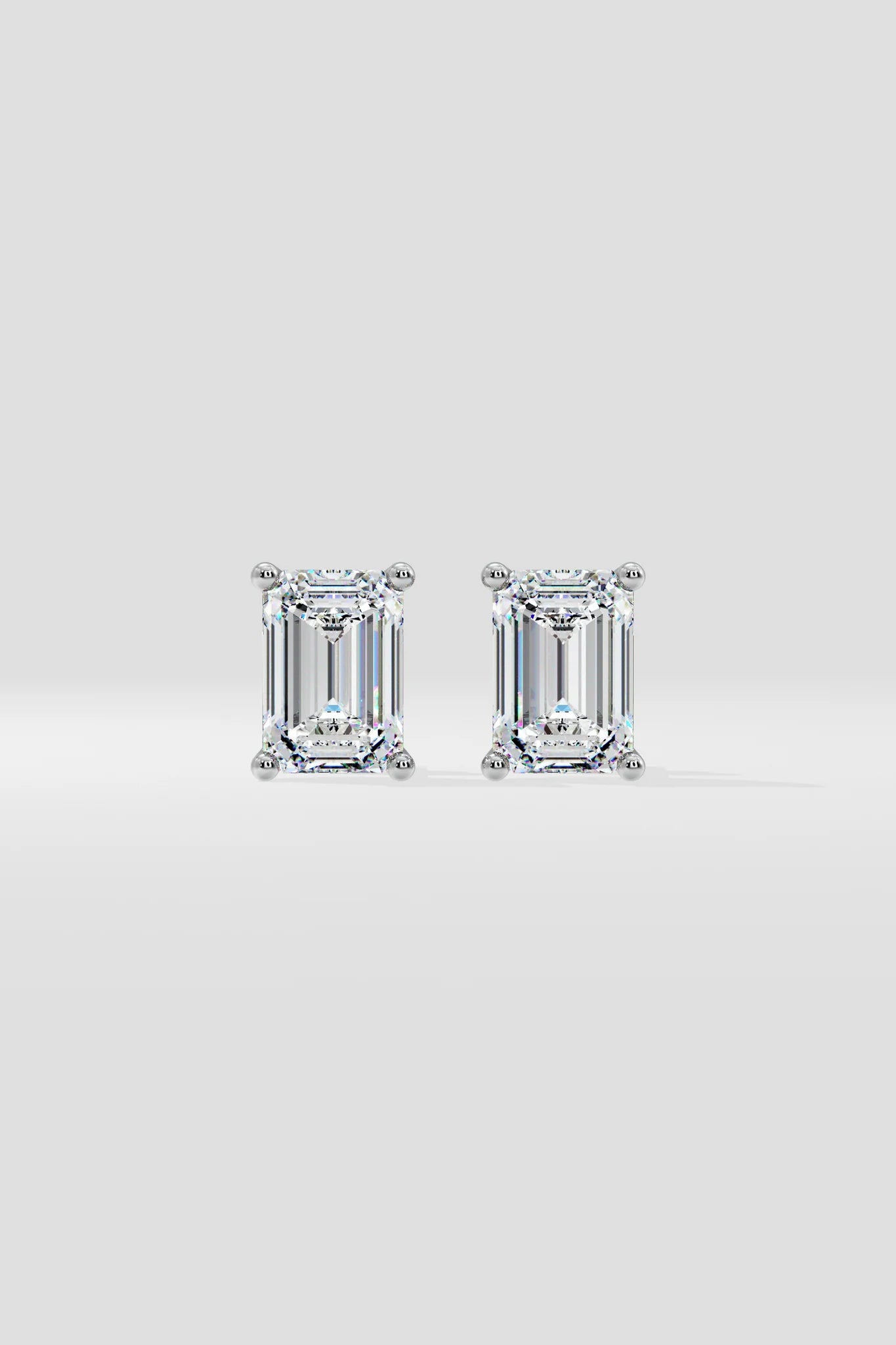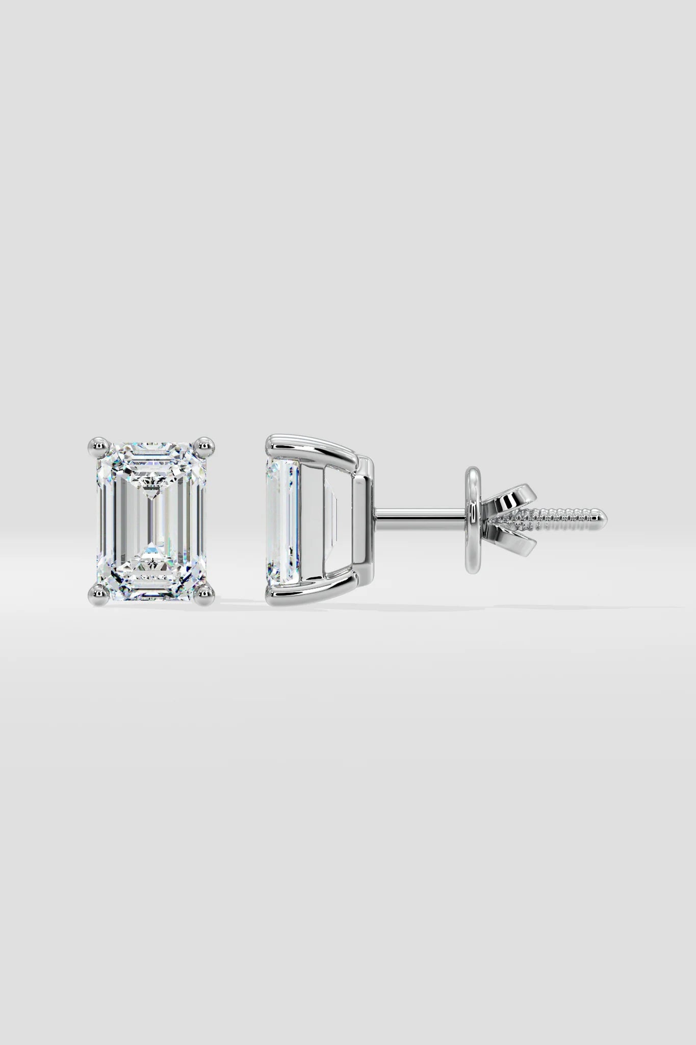 The classic emerald cut studs in 1 carat each are set in 4 prongs. Minimal, beautiful, and understated luxury. Options in Rose, Yellow, and White gold.