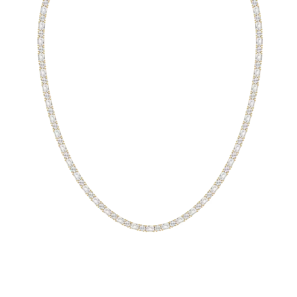 Showcase timeless elegance with our 18 Inch Lab-Grown Diamond Necklace, featuring an exquisite combination of round and emerald-cut diamonds. Available in 14K or 18K White, Yellow, and Rose Gold, this necklace embodies sophistication and grace.