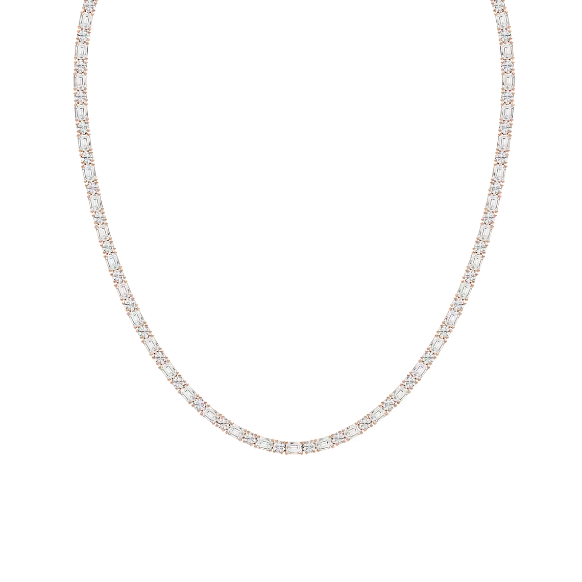 Classic Round and Emerald Cut Tennis Necklace